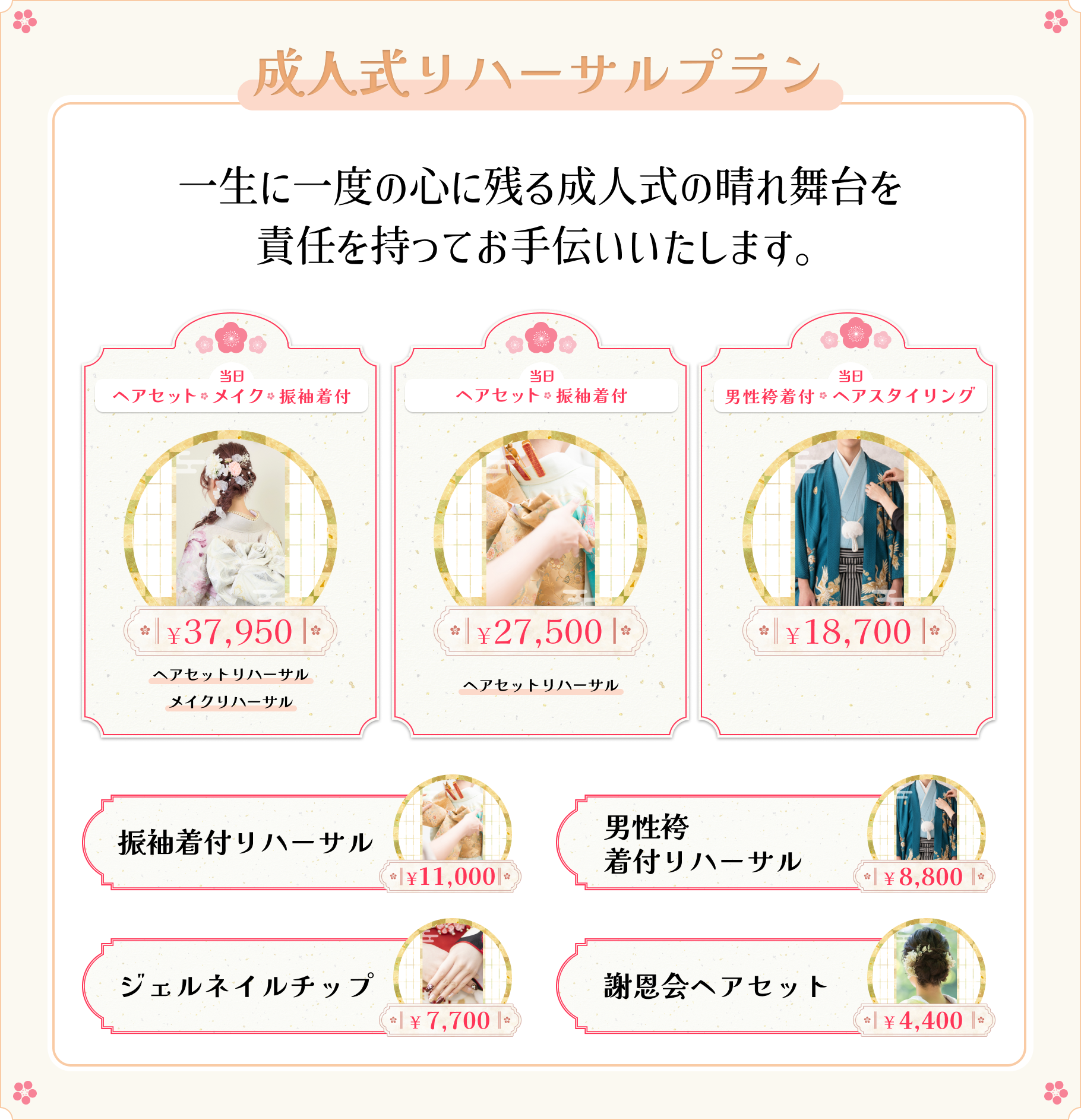 - 成人式のご予約の受付は、スーパーカット大通店、元町店のみとなります。